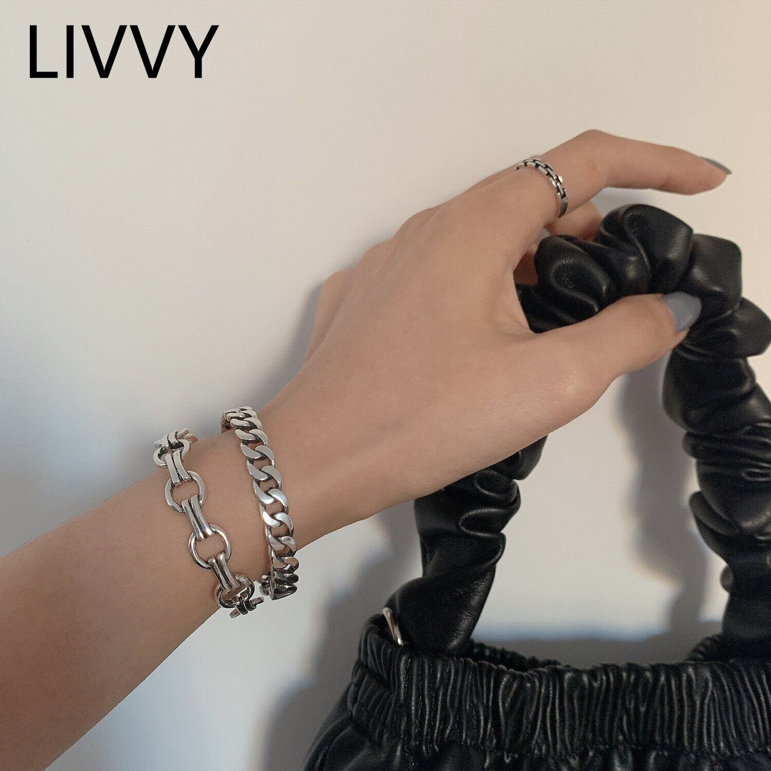 LIVVY ミニマリストチェーンタイシルバーカラーブレスレット女性男性調節可能な手作りパーティージュエリーギフト アジャスタブル 銀 Liv94482876009