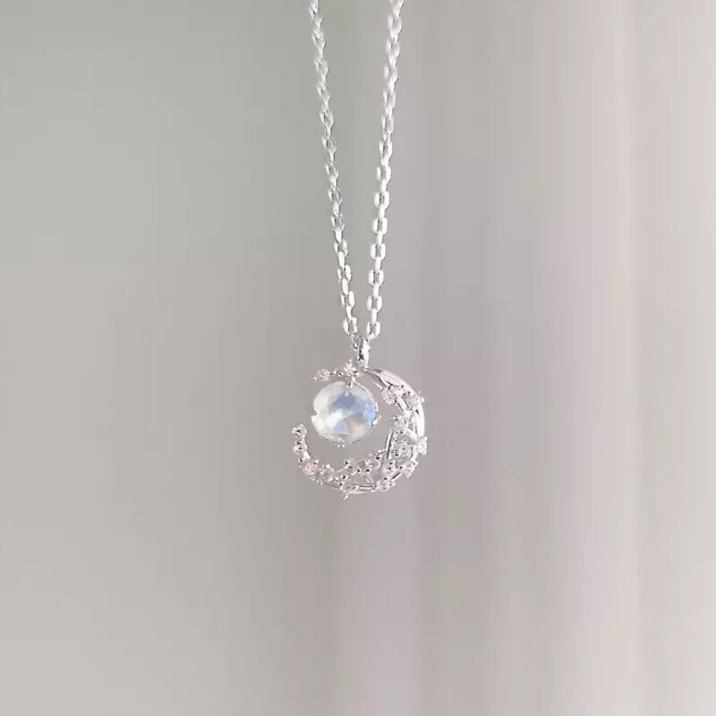 LIVVY シルバーカラームーンミニマラカイトペンダントネックレス女性鎖骨チェーンパーティージュエリー防止アレルギー レース 銀 Liv57565638747