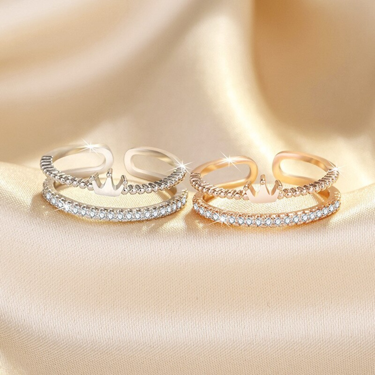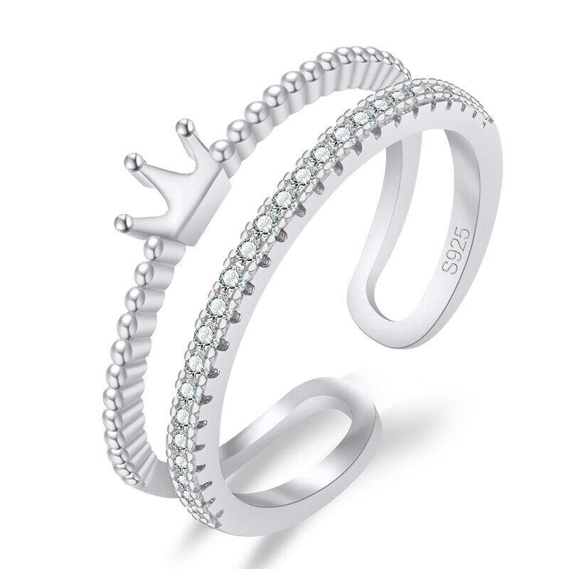 シルバーカラージルコンクリスタルダブルクラウンリングオープニングアジャスタブルリング女性ウェディングジュエリーパーティー Gi 指輪 銀 Liv16795281317