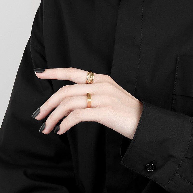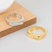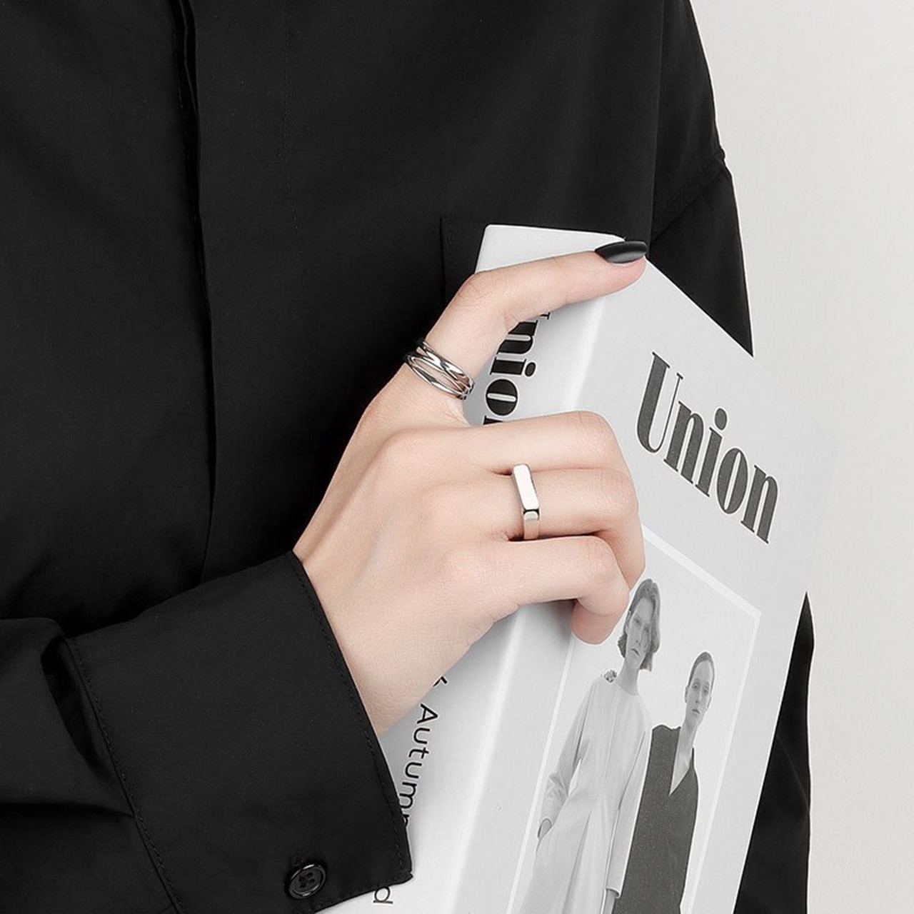 LIVVY シルバーカラーシンプルで滑らかな長方形開口部調整リング女性クリエイティブ手作りパーティージュエリー 指輪 銀 Liv56279695578