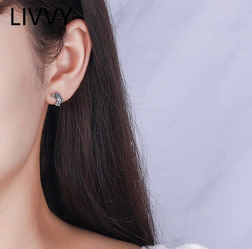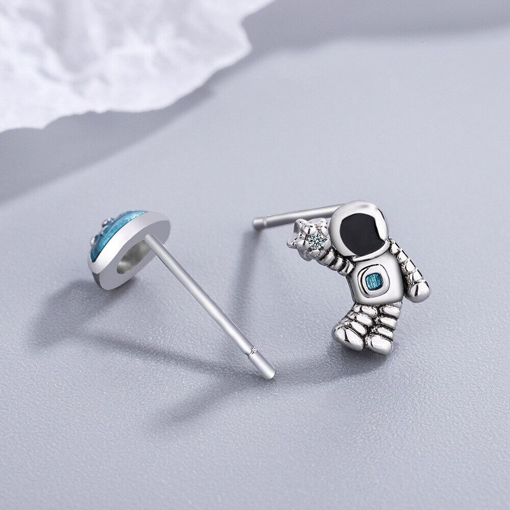 LIVVY シルバーカラートレンディな宇宙惑星宇宙飛行士非対称スタッドピアス女性の創造的な人格ジュエリー イヤリング リング 指輪 銀 Liv32207823002
