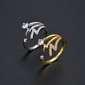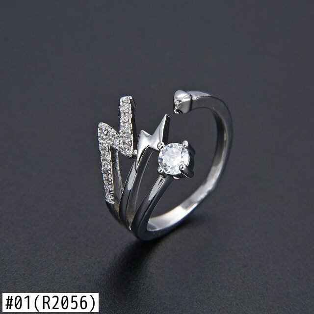 LIVVY シルバーカラーのユニークな多層ライトニングジルコンオープン調節可能なリングバレンタインデーのギフトジュエリー アジャスタブル 指輪 銀 Liv35219463609