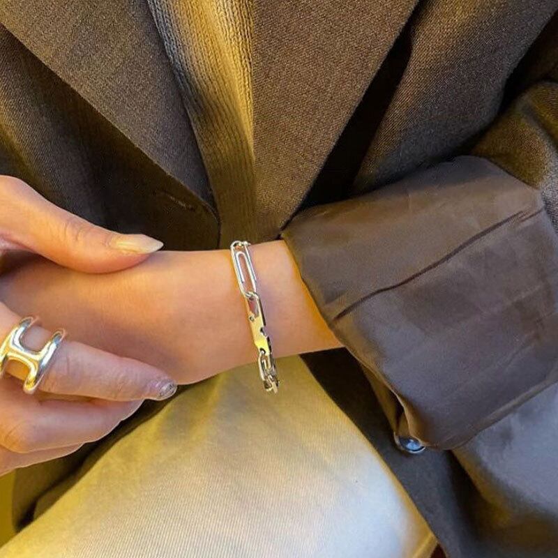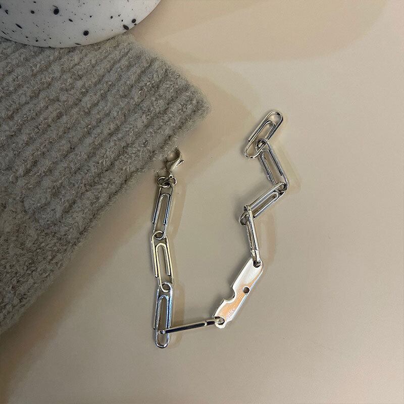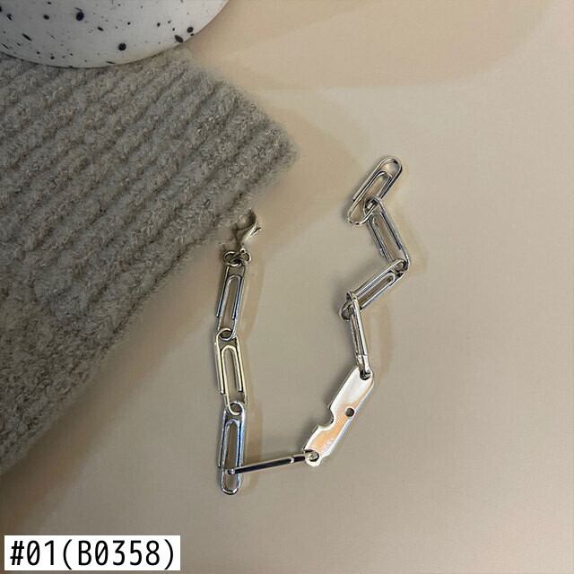 LIVVY シルバーカラー クリエイティブ ペーパークリップ チェーン ブレスレット シンプル パーティー ジュエリー アクセサリー 銀 Liv67866939442