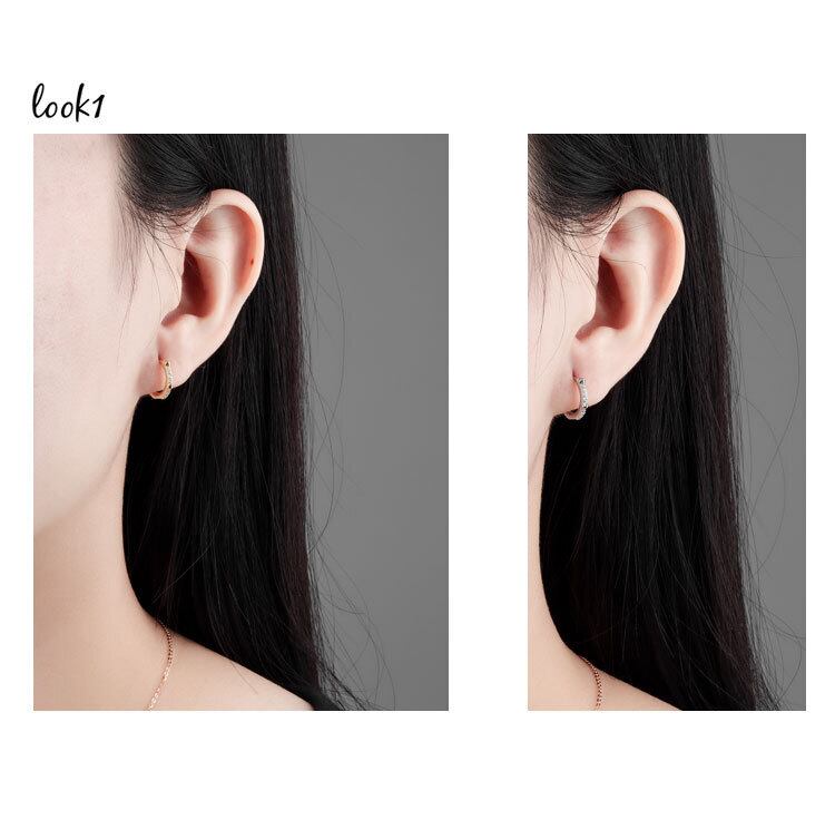 LIVVY シルバーカラーファインパンクリベットフープジルコンイヤリング女性ライトラグジュアリートレンディパーティージュエリーアクセサリー 銀 Liv96732113221
