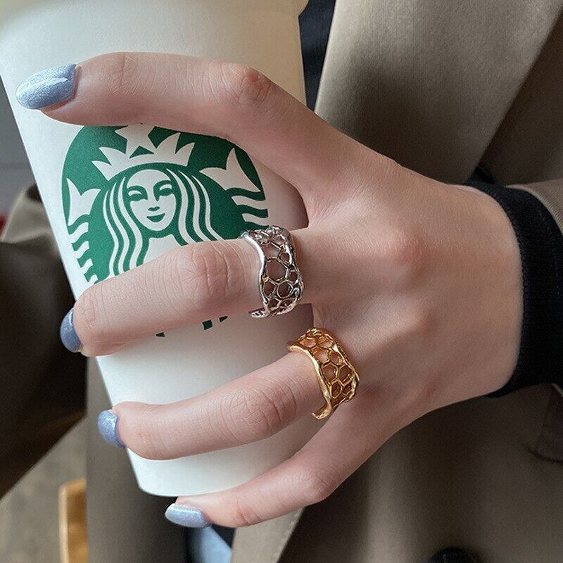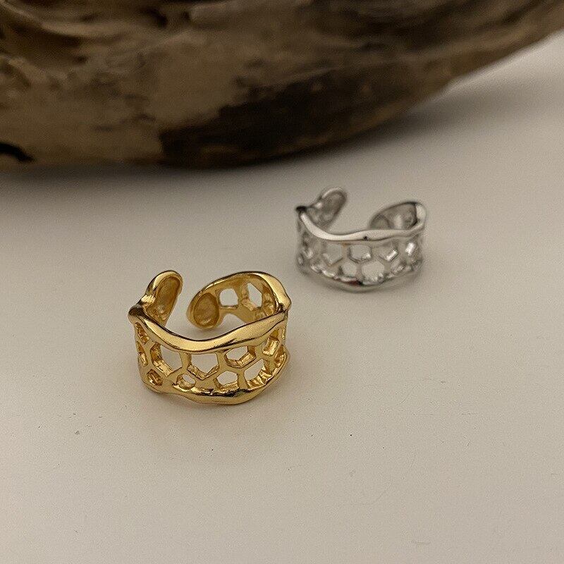 LIVVY シルバーカラー 不規則な幾何学中空 調節可能なリング トレンディなクリエイティブジュエリー パーティーギフト アジャスタブル 指輪 銀 Liv1174633000