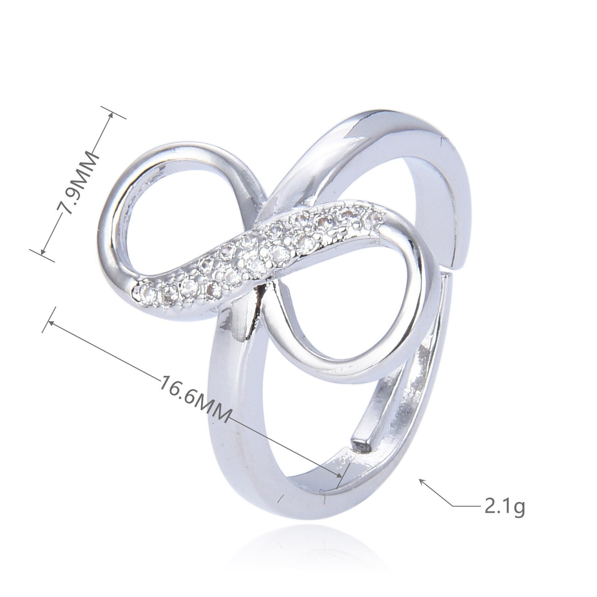 シルバーカラークリエイティブ中空アラビア数字 8 マイクロ象眼ジルコン調節可能なリングシンプルなパーティージュエリー アジャスタブル 指輪 銀 Liv62960538446