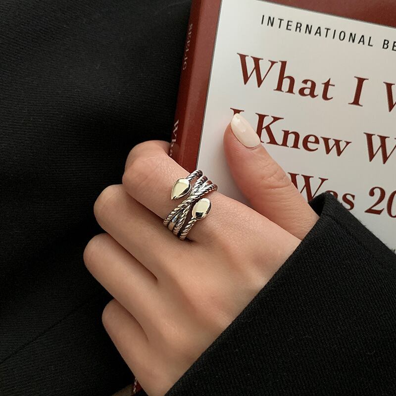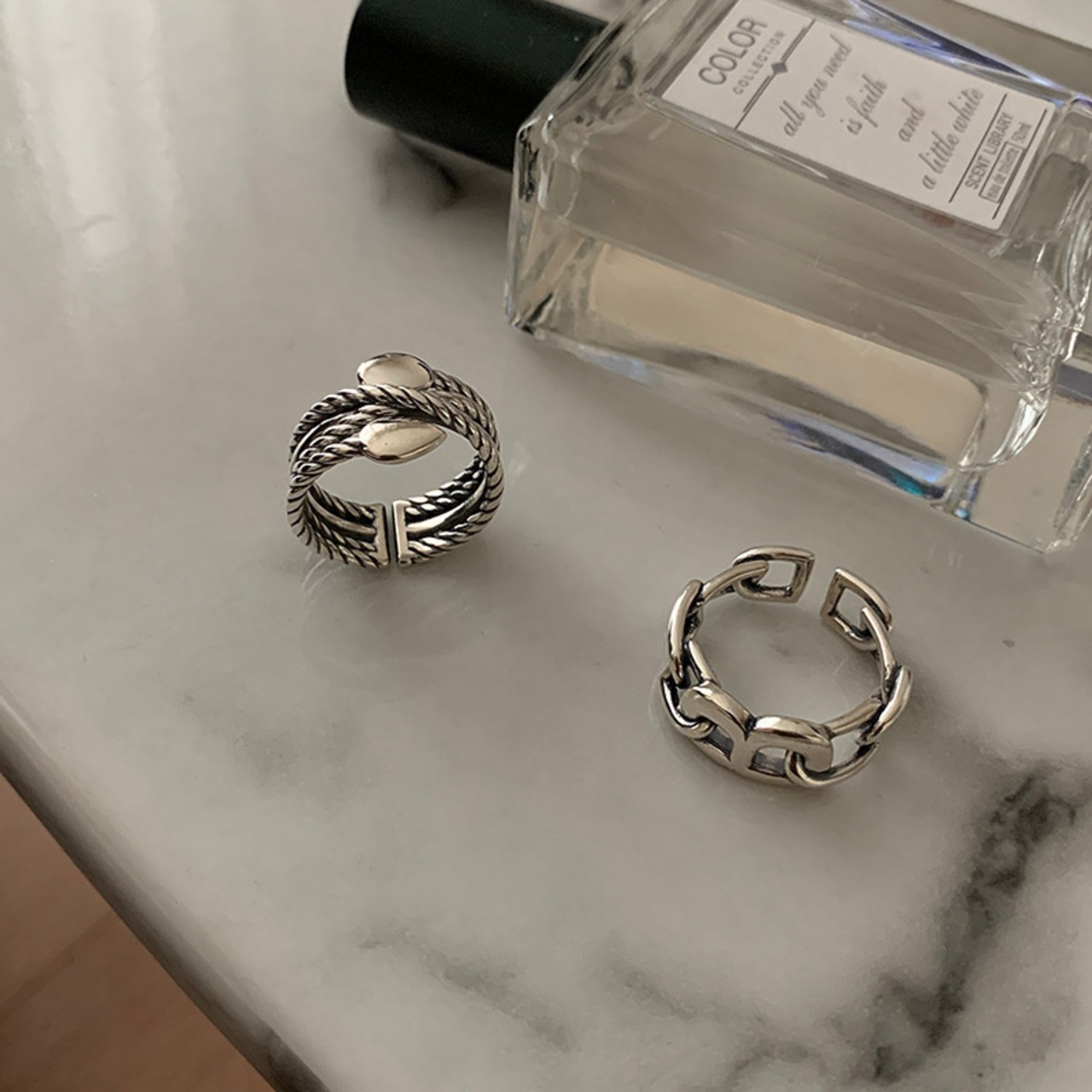 LIVVY シルバーカラー英字 B 中空アウトジオメトリチェーンオープンリング女性男性多層クロスリングジュエリー マルチレイヤー 指輪 銀 Liv7914432663
