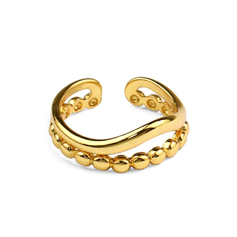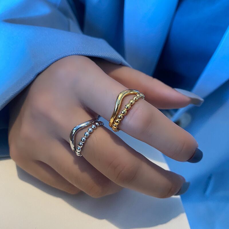 シルバーカラー二層オープニングリングトレンディなドットチェーン中空ジュエリーアクセサリー女性パーティーギフト 指輪 銀 Liv97672424934
