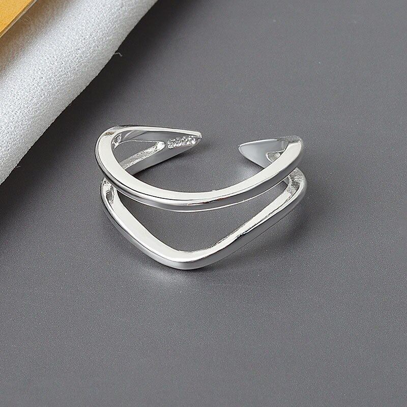 LIVVY シルバーカラー二重層幾何リングオープン指リング女性ミニマリストアクセサリーギフト 2021 トレンド 指輪 銀 Liv18366938773