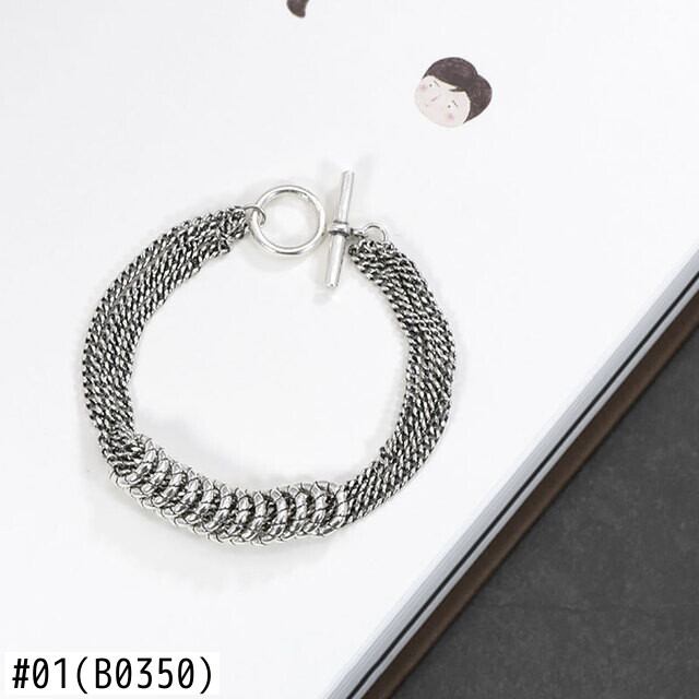 LIVVY タイシルバーカラー多層チェーンサークルブレスレットレディースメンズレトロ気質シンプルなジュエリー マルチレイヤー 銀 Liv4497320100