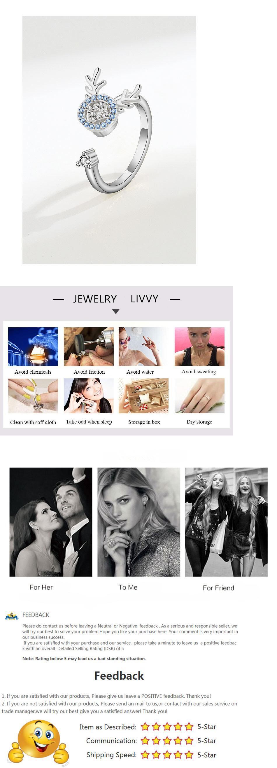 LIVVY シルバーカラー絶妙な枝角スイベルオープニング調節可能なリング高級ブルージルコンリングジュエリークリスマスギフト アジャスタブル 指輪 銀 Liv53149357930