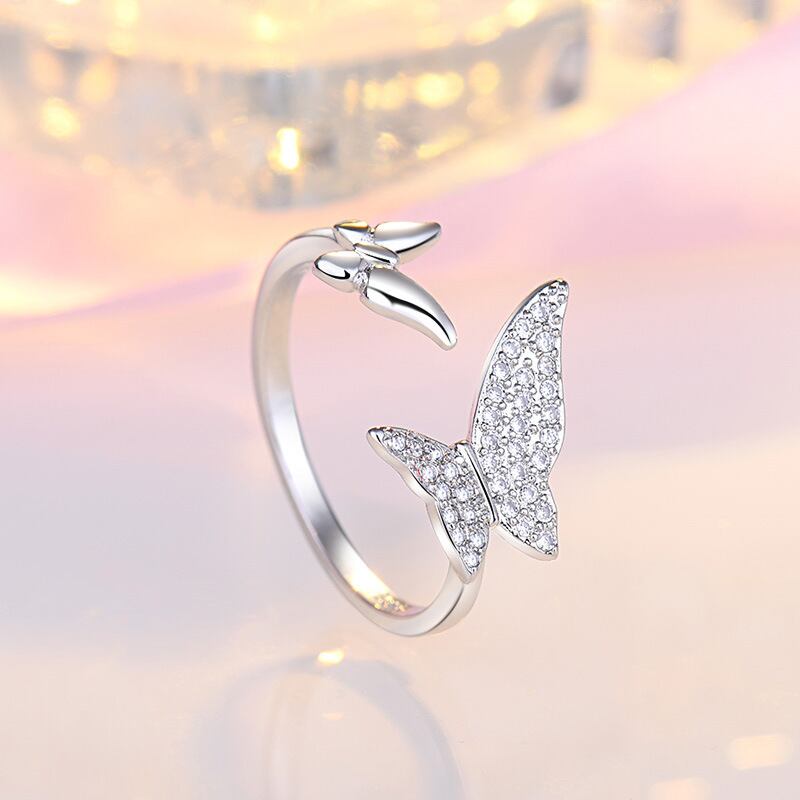 LIVVY 2022 バタフライシャインジルコンクリスタルシルバーカラーリング女性オープン調節可能なウェディングパーティージュエリーギフト アジャスタブル 指輪 銀 Liv10113681078