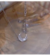 LIVVY シルバーカラーマイクロインレイムーンシェルペンダントネックレス女性鎖骨チェーンネックレスジュエリーギフト レース 銀 Liv565929823