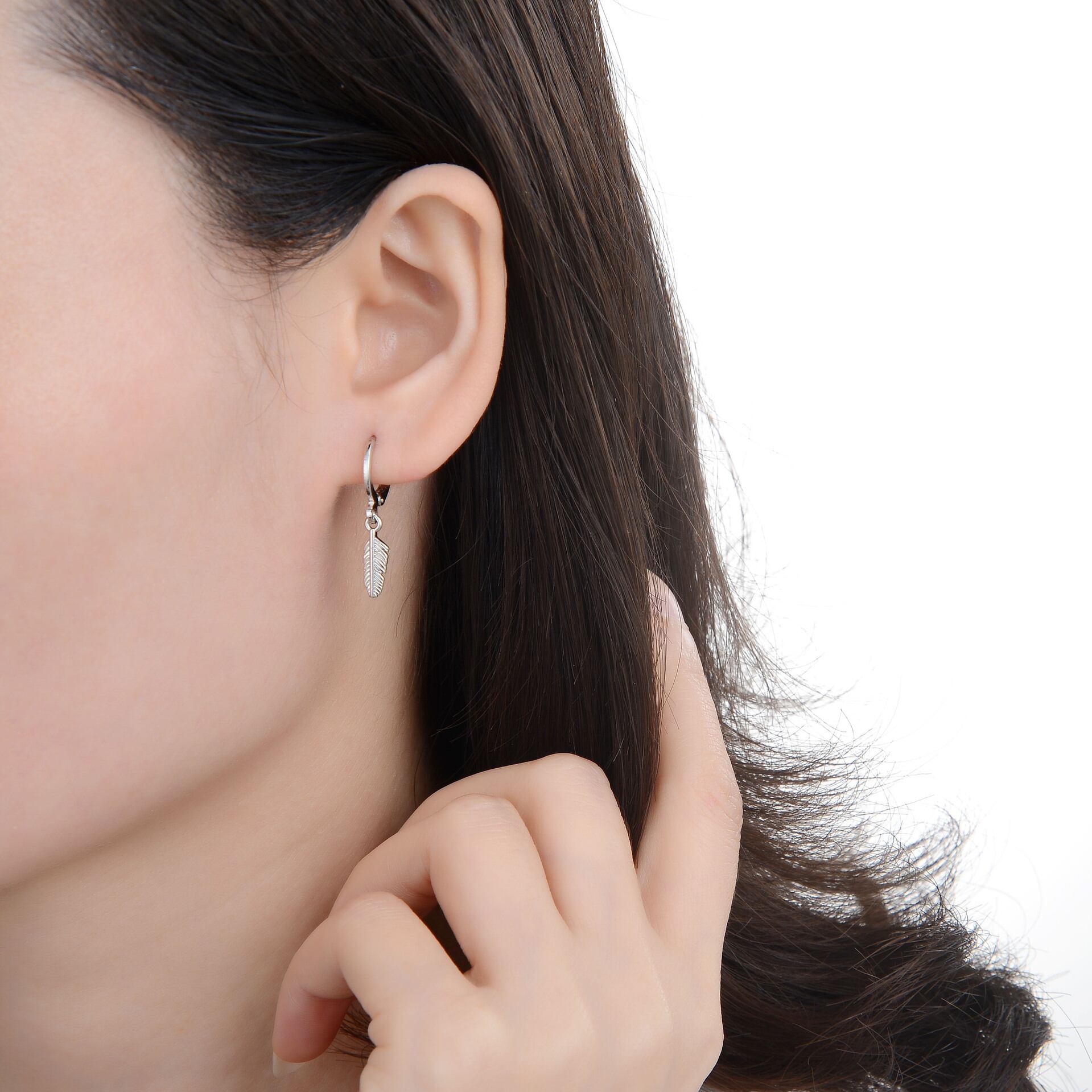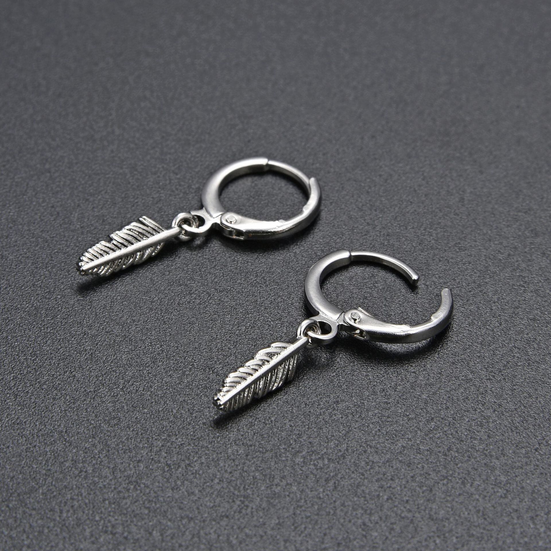 LIVVY シルバーカラーパンクフェザーペンダントイヤリングレディースメンズクリエイティブパーティージュエリーアクセサリー 銀 Liv33989563000