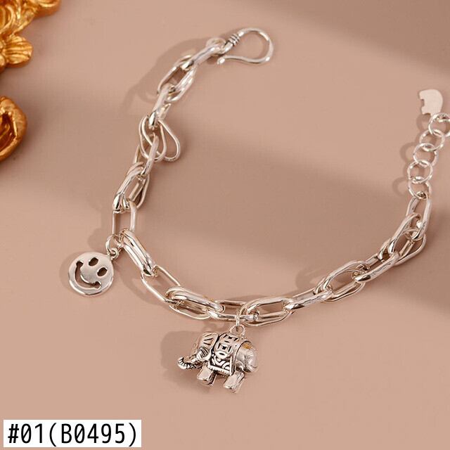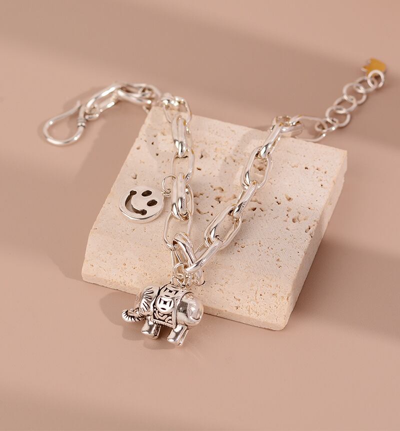 LIVVY シルバーカラースマイリーフェイス象ペンダント太いチェーンブレスレット女性パーティージュエリーアクセサリー 銀 Liv77631069964