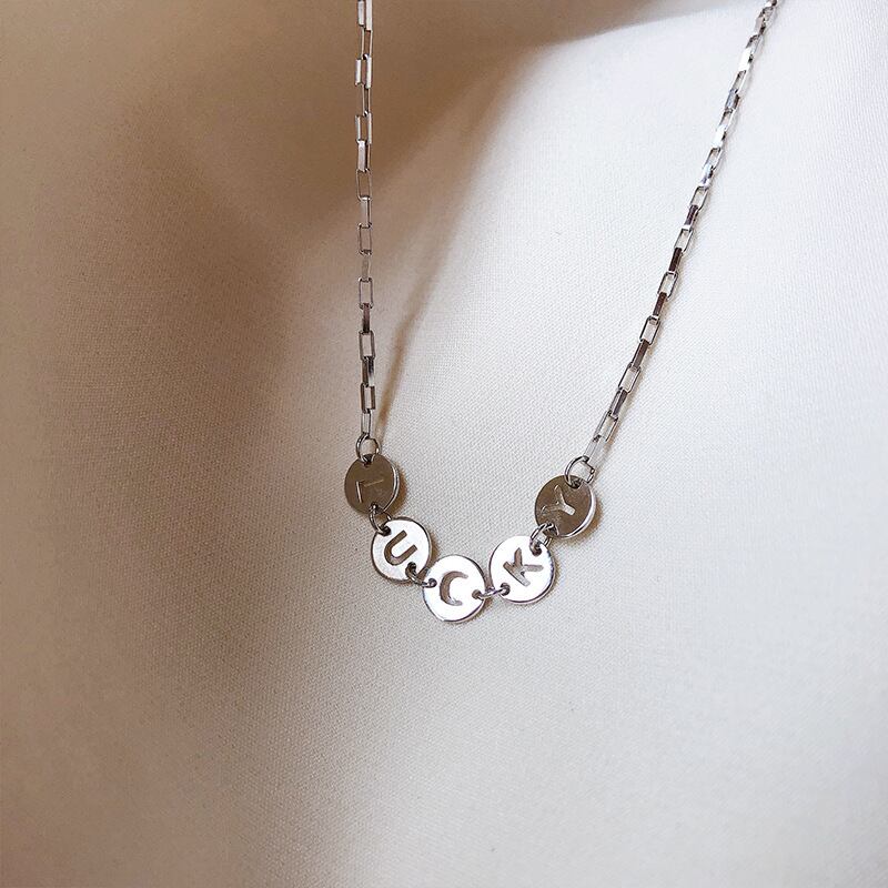 LIVVY シルバーカラー ラウンド中空文字 ラッキーペンダント ネックレス シンプル 鎖骨チェーン 気質ギフト レース 銀 Liv55264422955