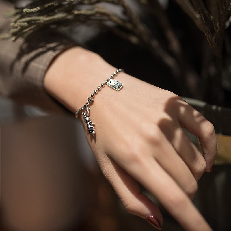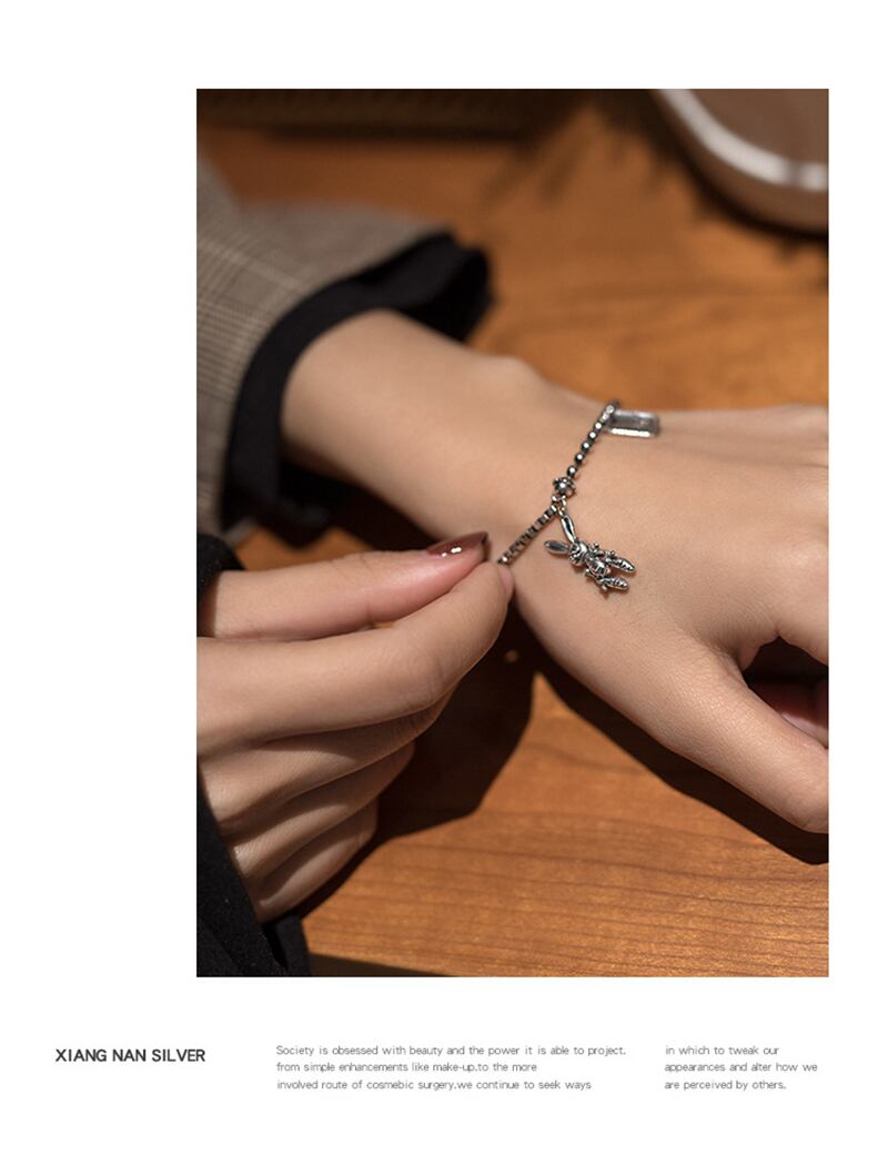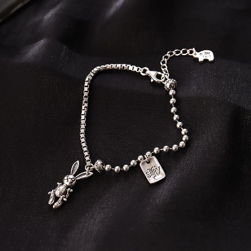 LIVVY クリエイティブかわいいウサギのペンダントブレスレットハンドジュエリー女性タイシルバーカラーパーティー Accessorie ギフト アクセサリー 大人ガーリー スウィート キュート カジュアル 銀 Liv4387373903