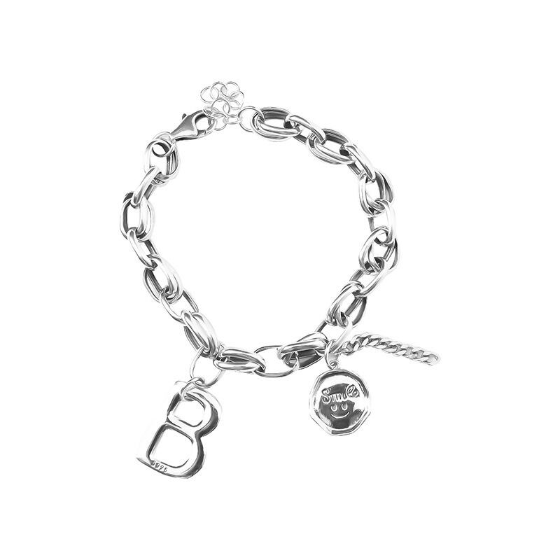 シルバー色の太いチェーン不規則な幾何学スマイリーフェイスブレスレット女性トレンディヒップホップクリエイティブレター B ペンダントジュエリー 銀 Liv3234263456