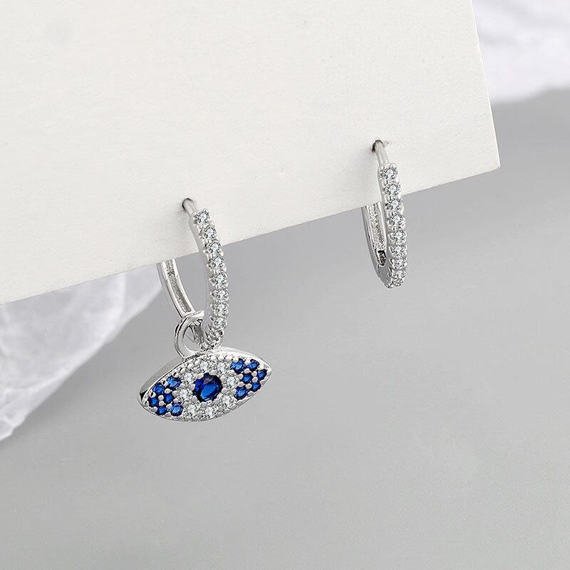 LIVVY シルバーカラーブルージルコンデビルアイペンダント非対称イヤリング女性パンクフープイヤリングパーティージュエリーギフト 指輪 銀 Liv99199301986