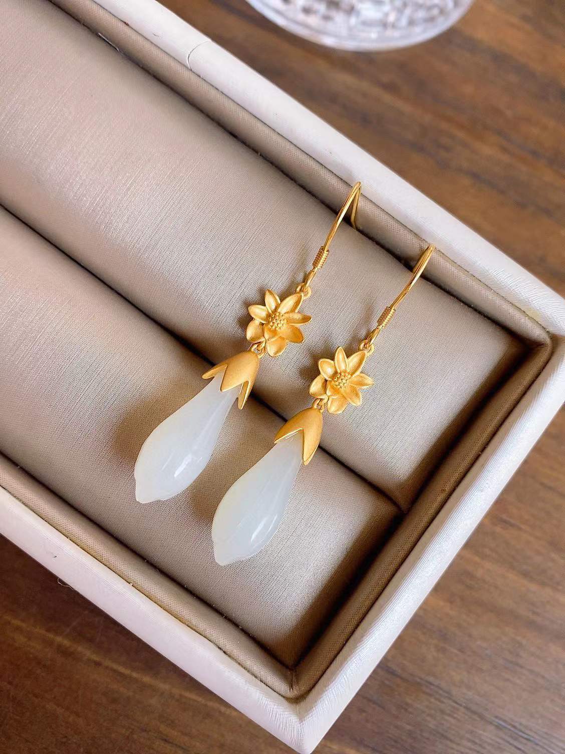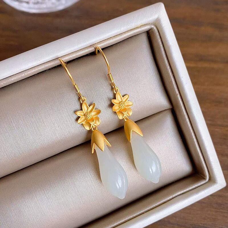 LIVVY クリエイティブ蘭の花天然石ペンダントイヤリング女性中国風のユニークな高級高級チャームジュエリー ナチュラル 指輪 フラワーデザイン Liv28129523734