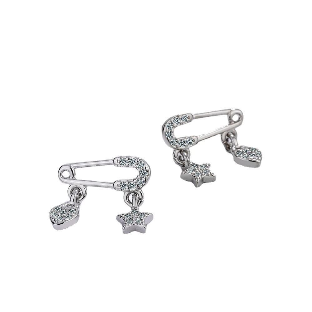 LIVVY シルバーカラーシンプルパンクかわいいピン耳爪イヤリング女性気質ジルコンハート星型ガールジュエリー 大人ガーリー スウィート キュート カジュアル 指輪 銀 Liv79485198168