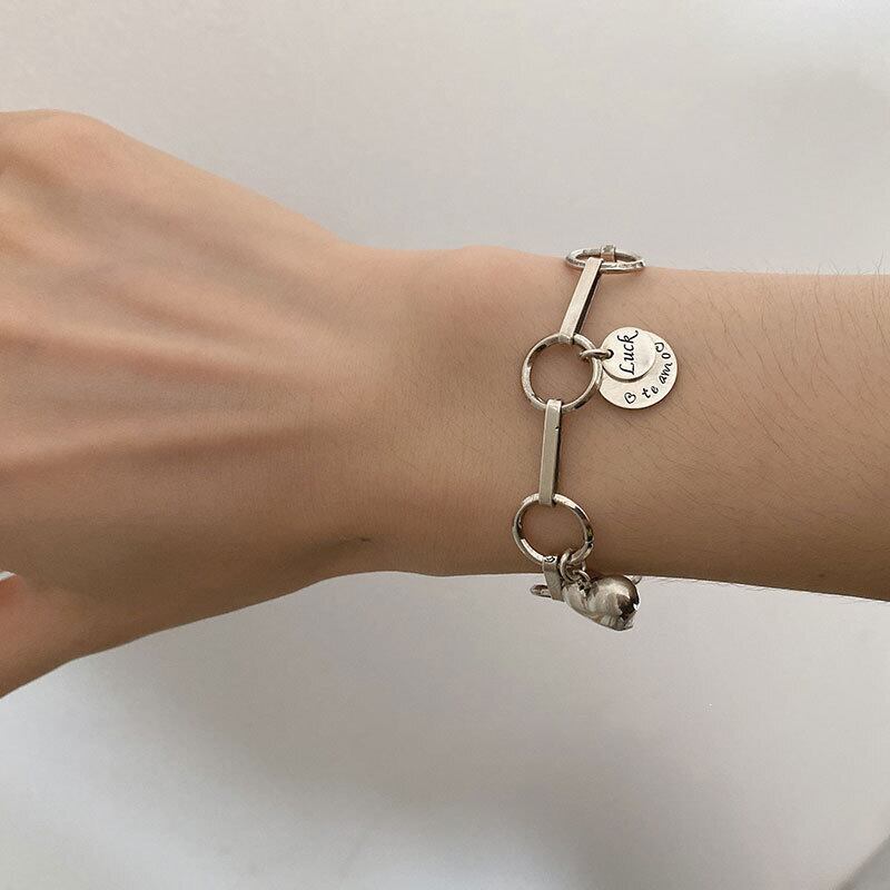 LIVVY ラッキーレター ラウンドハート型ブレスレット ユニークなシルバーカラー レトロ ラグジュアリージュエリー 銀 Liv13754461212