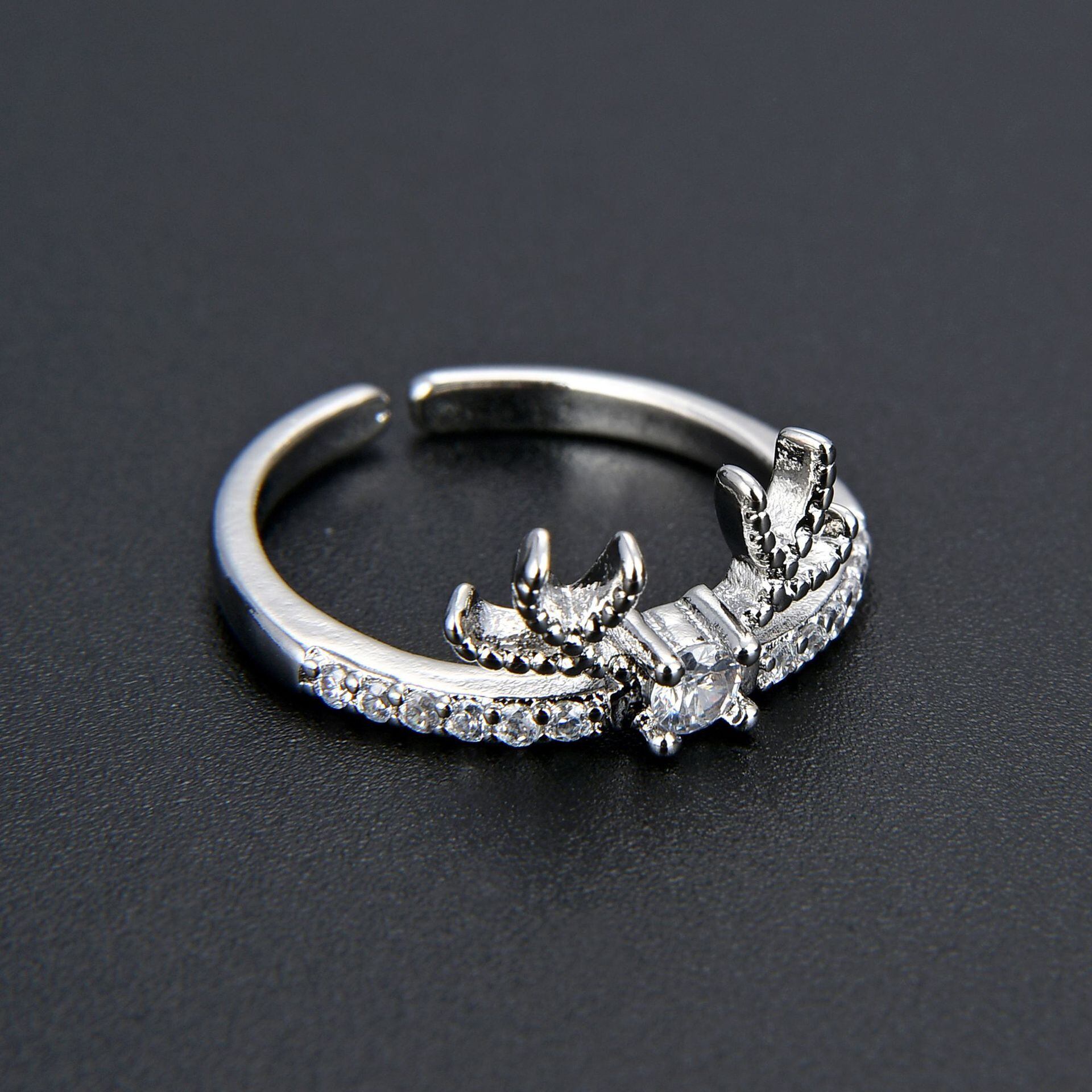 LIVVY シルバーカラー枝角ジルコンサイズ調節可能なリング女性の人格パンクパーティージュエリー アジャスタブル 指輪 銀 Liv93654533889