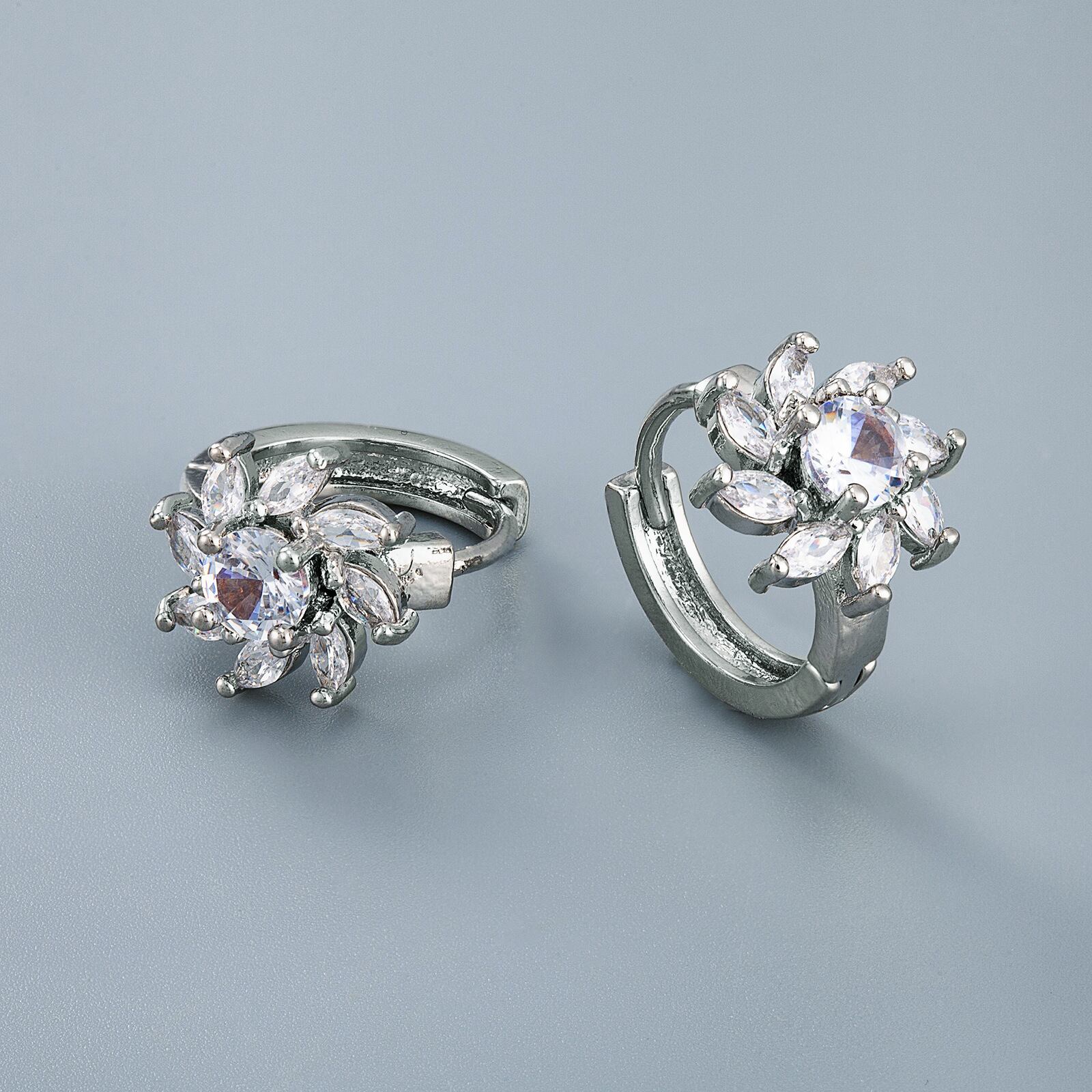 LIVVY シルバーカラークリスタルジルコンフラワーフープイヤリング女性ミニマリストファインジュエリーアクセサリー 指輪 フラワーデザイン 銀 Liv75896066579