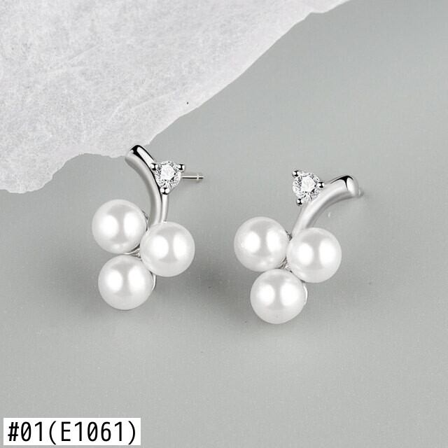LIVVY シルバーカラーパールジルコン小さなスタッドのイヤリングの女性の創造的なブドウ型のイヤリングファインジュエリー 真珠 指輪 銀 Liv48177018248