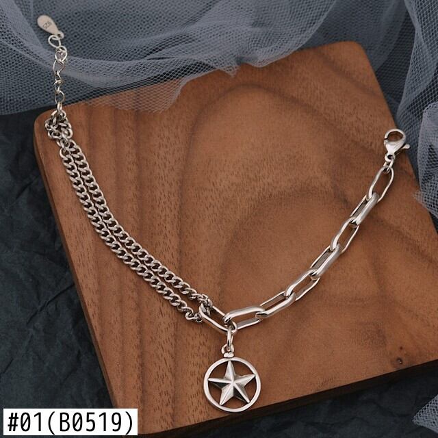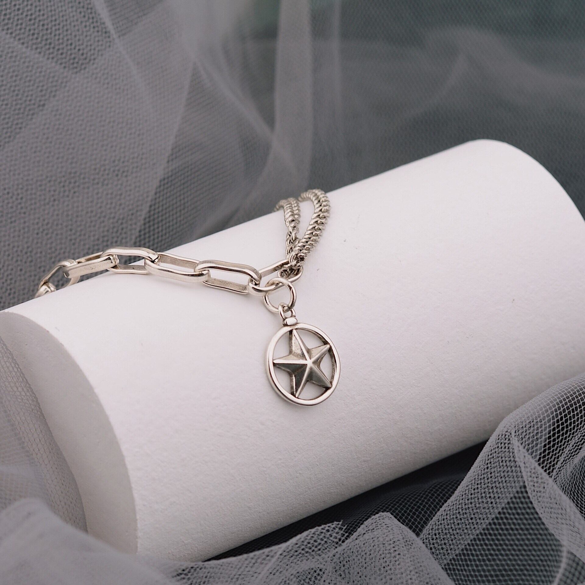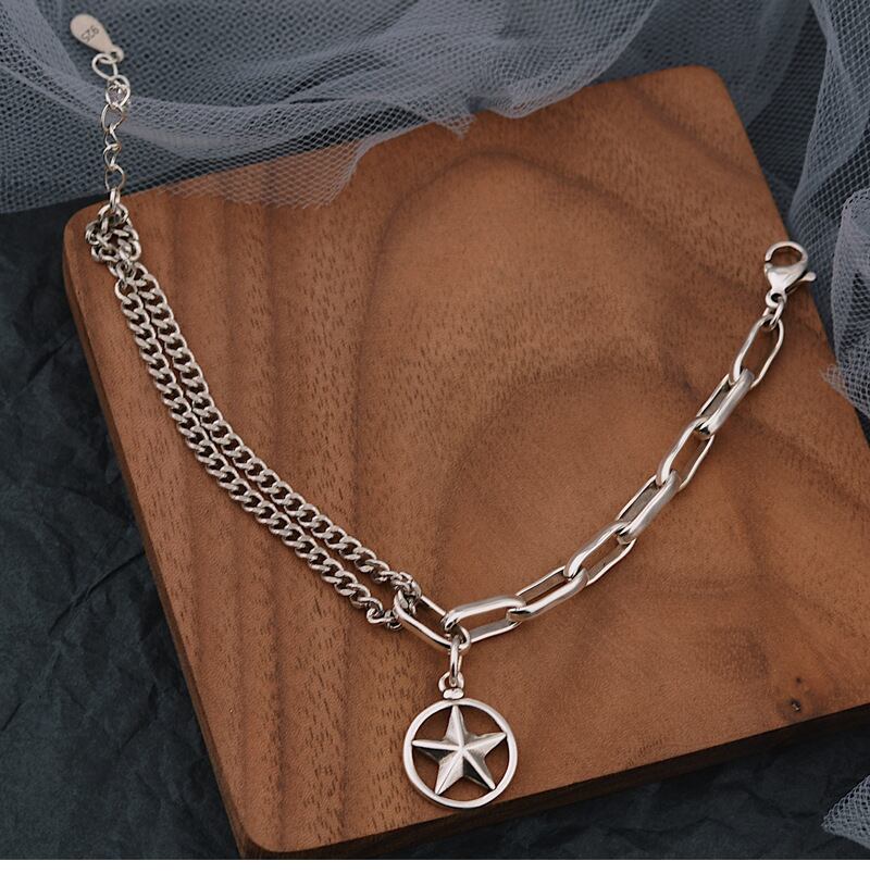 シルバー色の太いチェーンブレスレット女性の気質絶妙なユニークな星のペンダントパーティージュエリー 銀 Liv85560094992