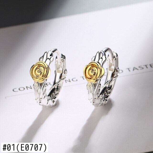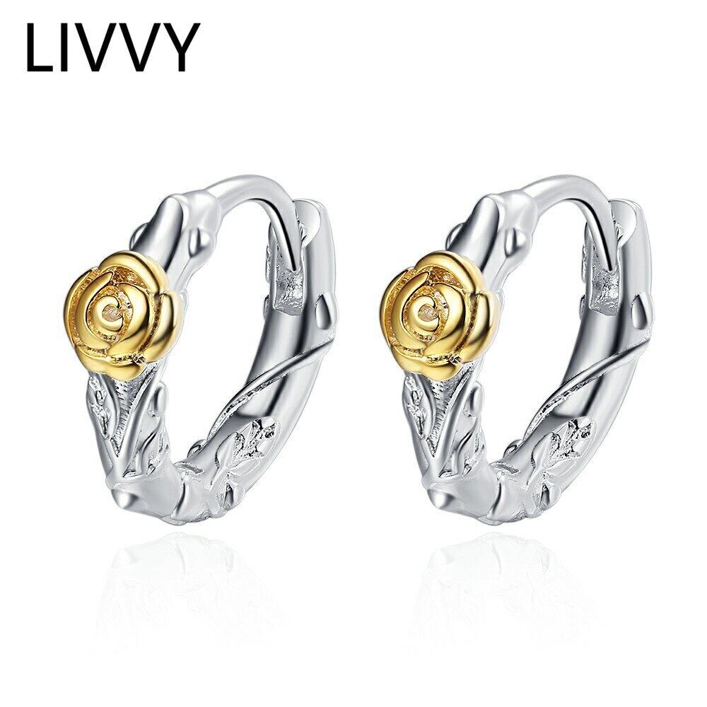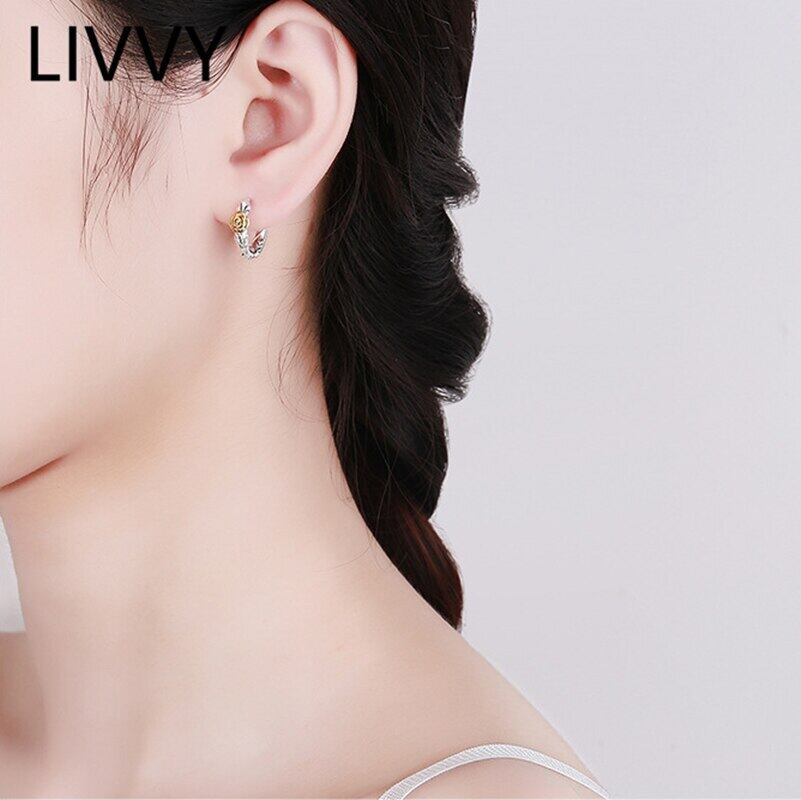 LIVVY ローズフラワーシルバーカラーフープイヤリング女性ガールクリックトレンディなジュエリーギフト 指輪 フラワーデザイン 銀 Liv16105215984