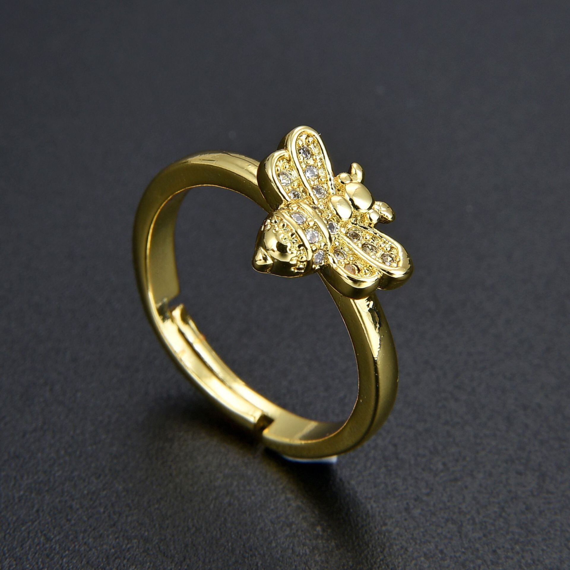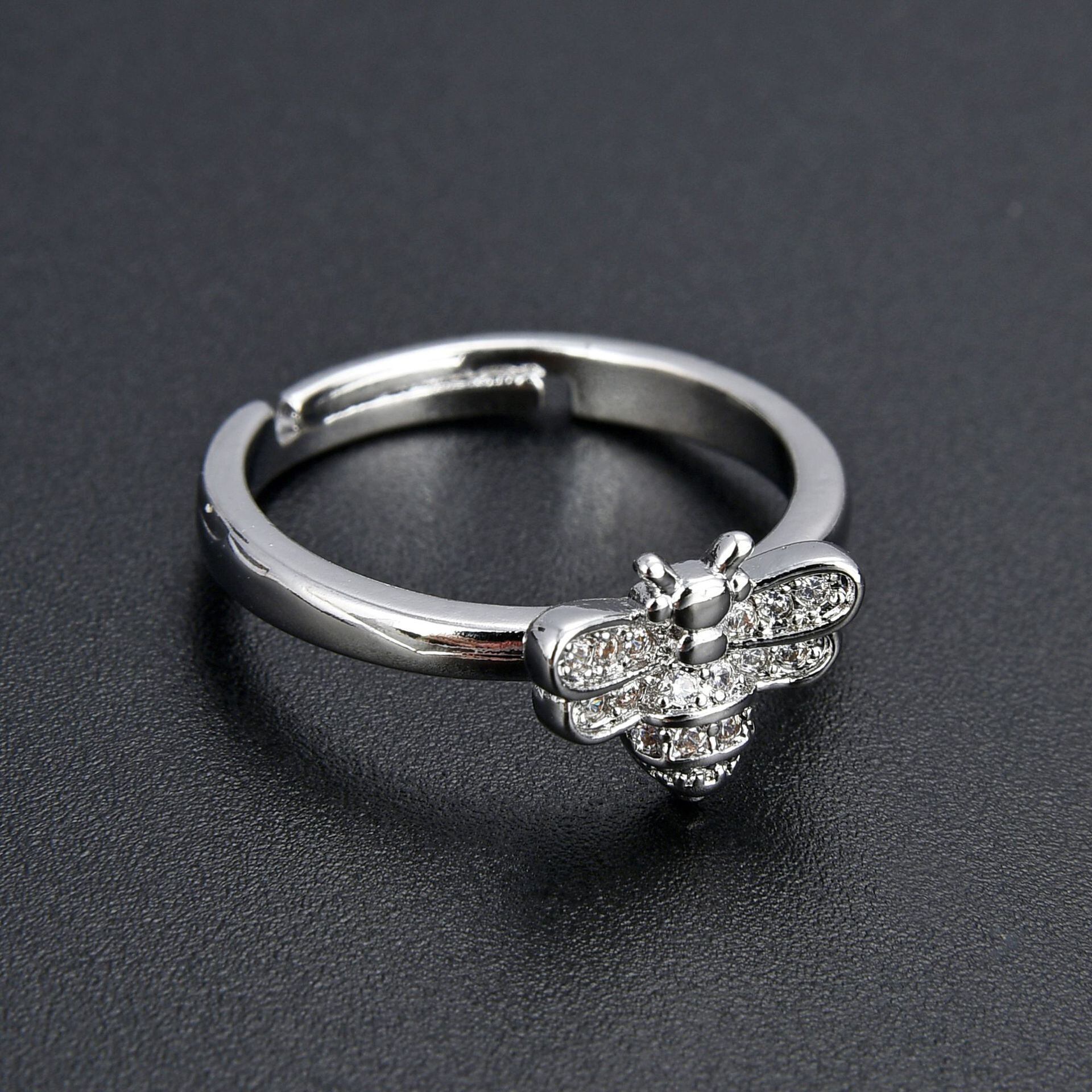 LIVVY シルバーカラーホットジルコン蜂オープン調節可能なリング女性ガールズパーティーウェディングアニマルリングハンドジュエリー アジャスタブル 指輪 銀 Liv45322136871