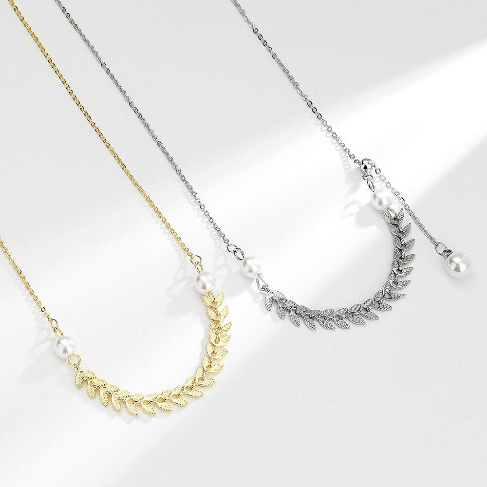 シルバーカラー小麦パールネックレス鎖骨ネックレスシンプルで豪華な優雅な鎖骨チェーンウェディングジュエリー レース 真珠 銀 Liv83176341415