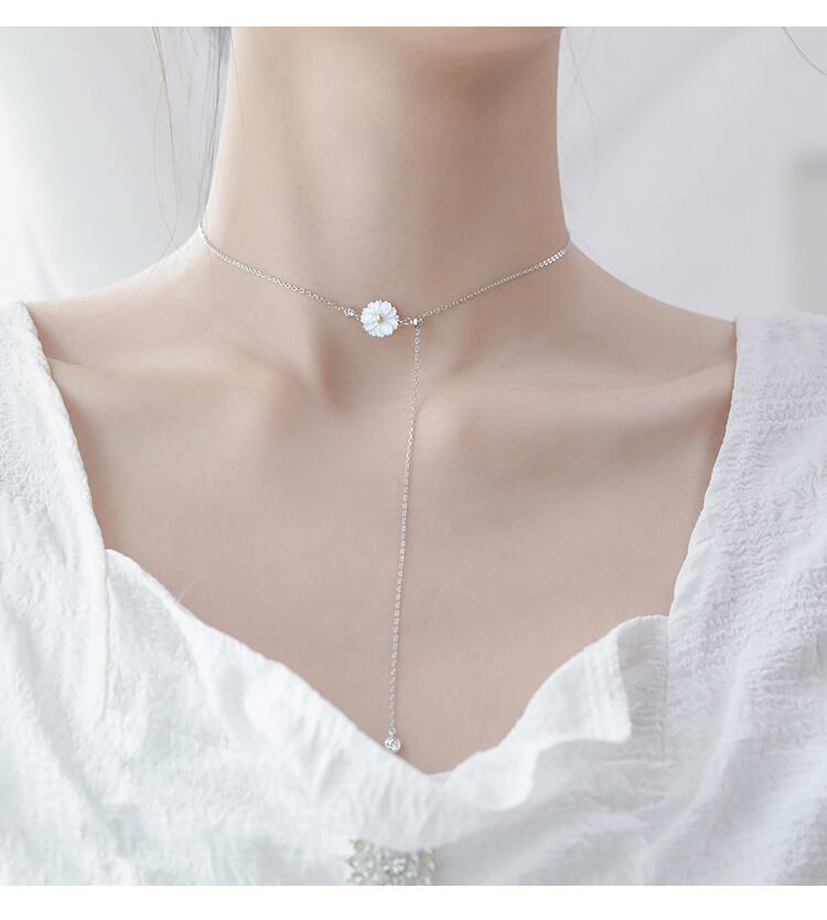 LIVVY シルバーカラーの花のペンダントネックレス女性 Tel 鎖骨チェーンパーティージュエリー レース フラワーデザイン 銀 Liv89655518081