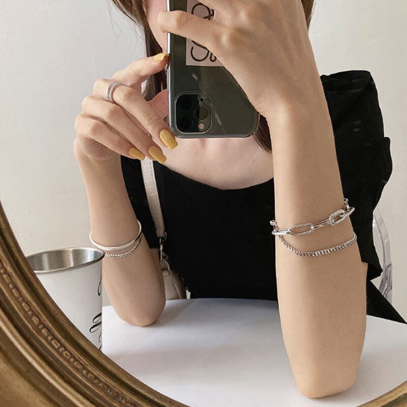 LIVVY シンプルな幾何学オーバル中空ジルコンダブルチェーンブレスレットインユニーク-エンドトレンド気質ジュエリー Liv9072097707