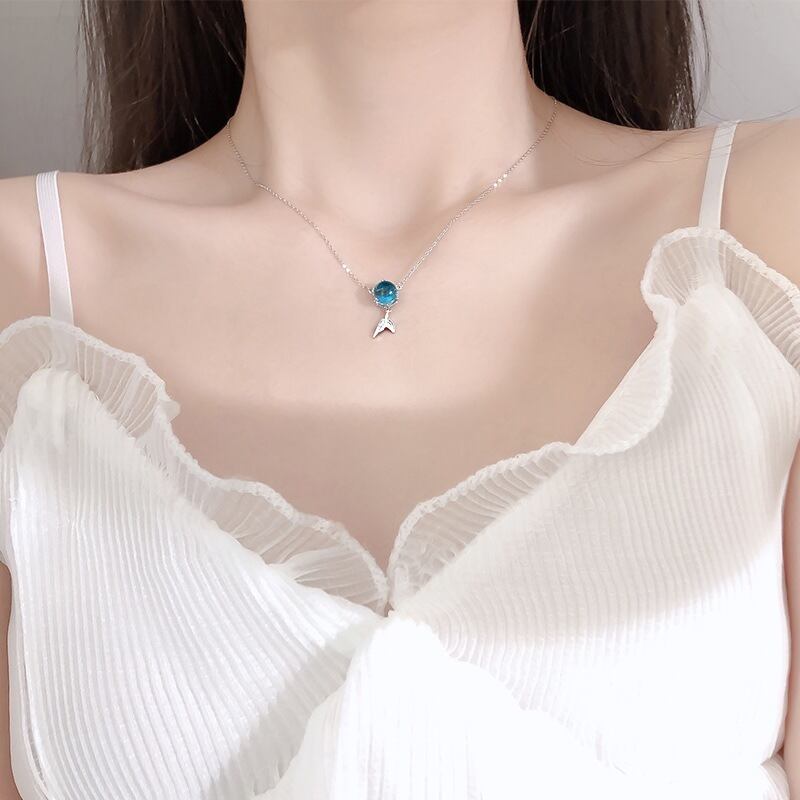 LIVVY シルバーカラーネックレス フィッシュテールブルームーンストーンペンダント 鎖骨チェーンジュエリーネックレス レース 銀 Liv37249908249