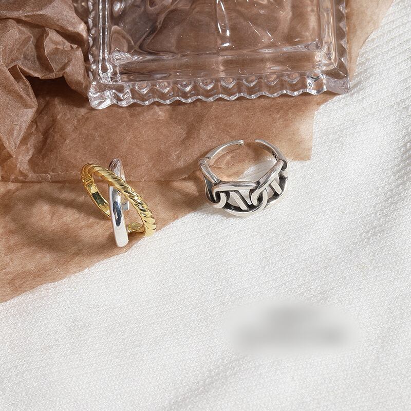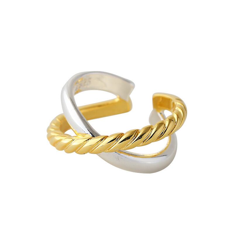 LIVVY シルバーカラーリング女性カップル手作りクロス幾何タイシルバー誕生日ジュエリーギフト 指輪 銀 Liv37750188356