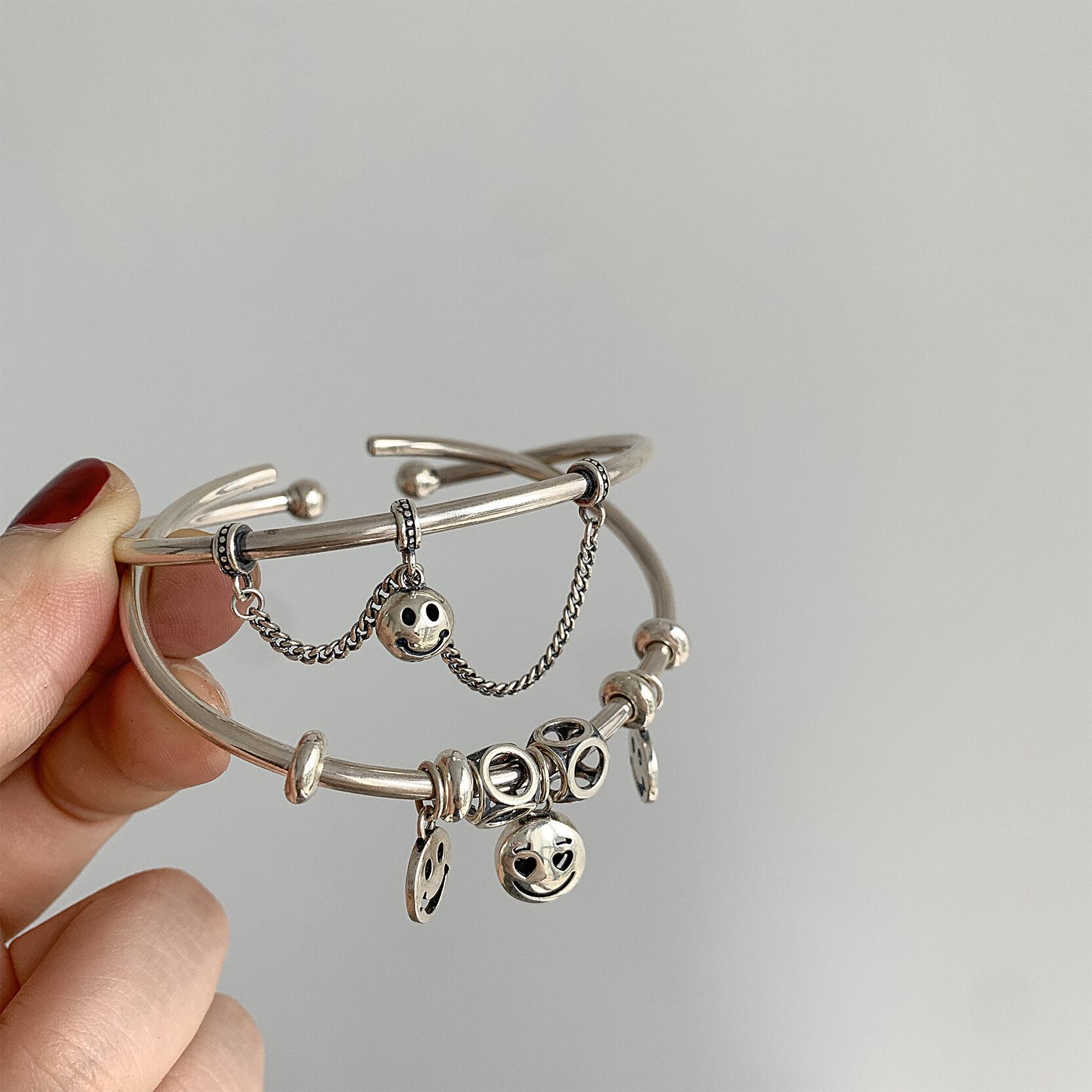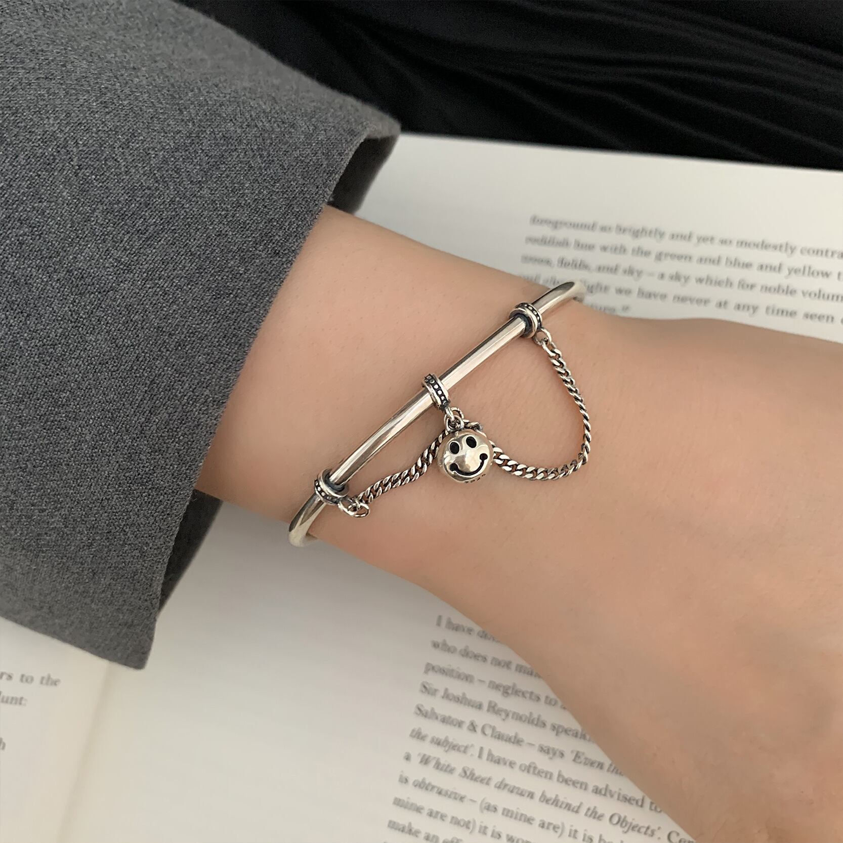 シルバーカラーカップルオープンブレスレットチャーム女性ジュエリーシンプルな笑顔チェーン電話パーティーアクセサリーギフト 銀 Liv1657735634