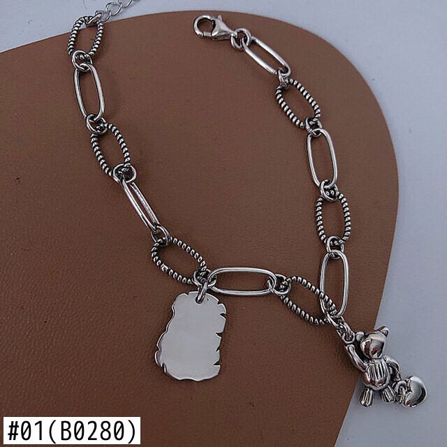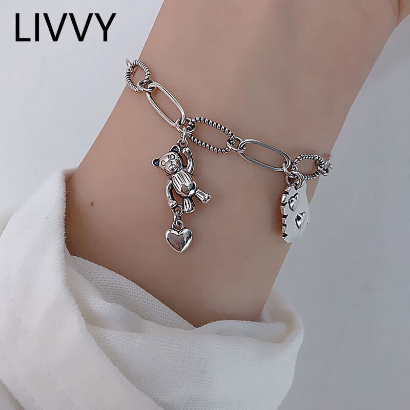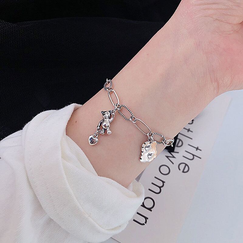 タイのシルバー色の愛のハート形のクマのペンダントブレスレット女性と男性トレンディなクリエイティブパンクパーティージュエリーギフト 銀 Liv63423038625
