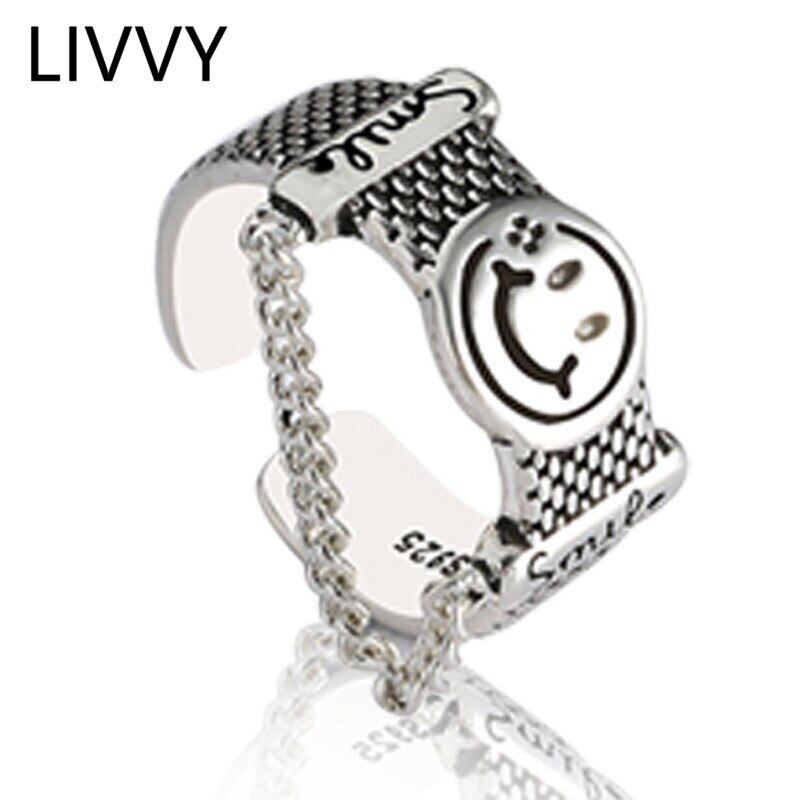 LIVVY シルバーカラーパンクスタイルのパーティージュエリー女性愛好家クリエイティブ幾何学スマイルフェイスオープニングリング 指輪 銀 Liv60473610001