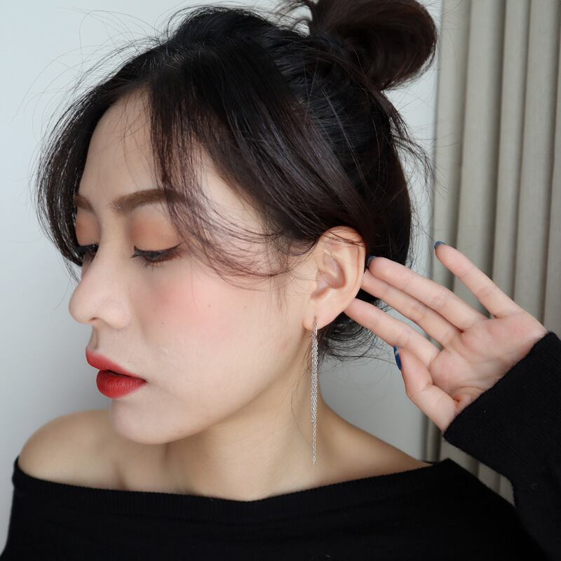 LIVVY シルバーカラーのトレンディな多層ロングチェーン Tel イヤリング女性の結婚式の魅力的なパーティージュエリー 指輪 銀 Liv13653754878