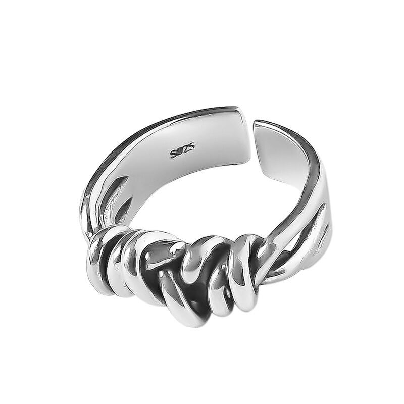 LIVVY シルバーカラー多層ラインリーフリングクリエイティブツイストノットタイシルバー調節可能なジュエリー女性 アジャスタブル 指輪 銀 Liv26122507525