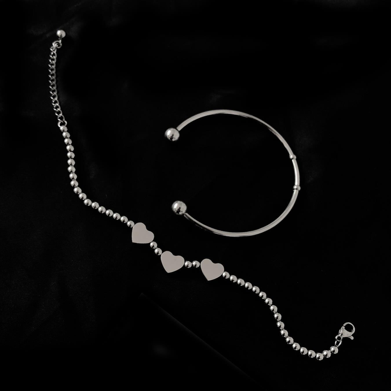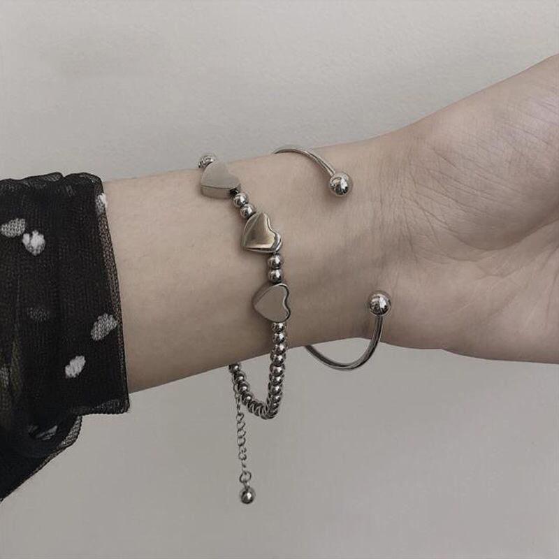 シルバーカラー 2 個の文字列のビーズラブハートブレスレット女性シンプルな腕輪アクセサリートレンディなパーティージュエリー 銀 Liv32720318610