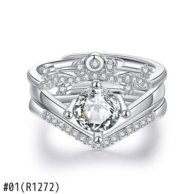 LIVVY 3 個シルバーカラークリスタルジルコン結婚指輪女性の高級婚約指輪ジュエリーアクセサリーギフト リング 銀 Liv75482723161