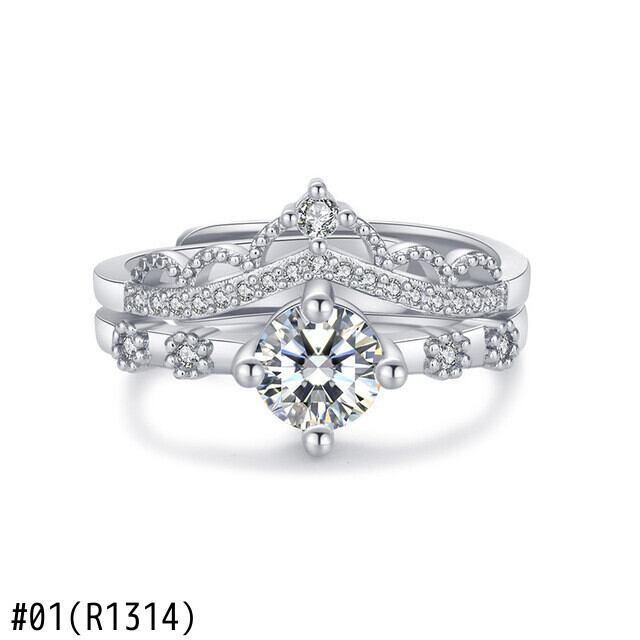 LIVVY シルバーカラーの高級クラウンジルコンローズゴールデンリング女性の結婚式婚約ジュエリーアクセサリー 指輪 銀 Liv78996141540
