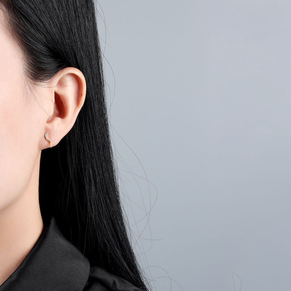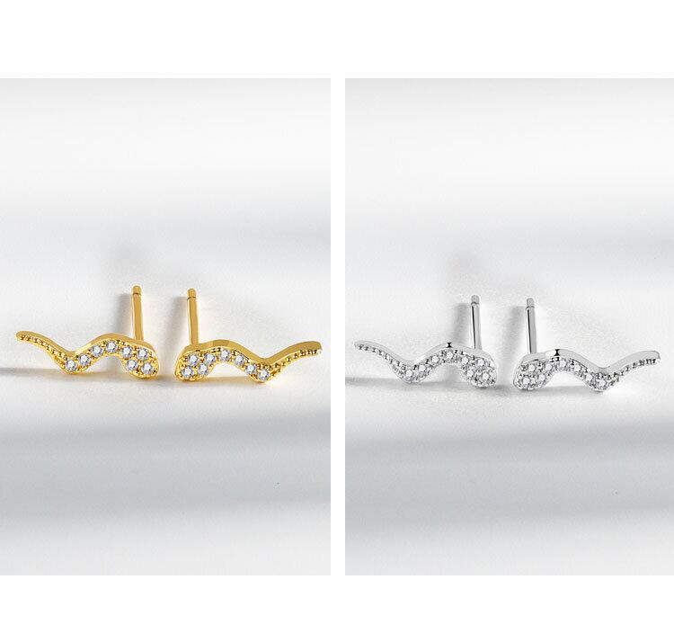 LIVVY シルバーカラーパンクジルコンスネーク小さなスタッドピアス女性の個性アニマルジュエリーギフト イヤリング リング 指輪 銀 Liv61325110053