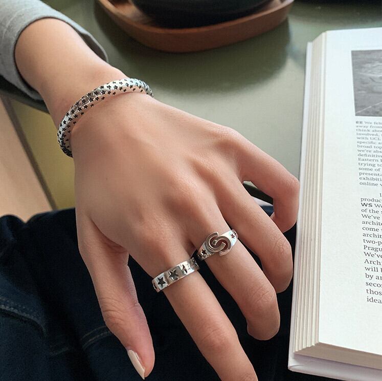 LIVVY シルバーカラー星型オープン調節可能なブレスレット女性パーティージュエリーアクセサリーギフト アジャスタブル 銀 Liv51076709984