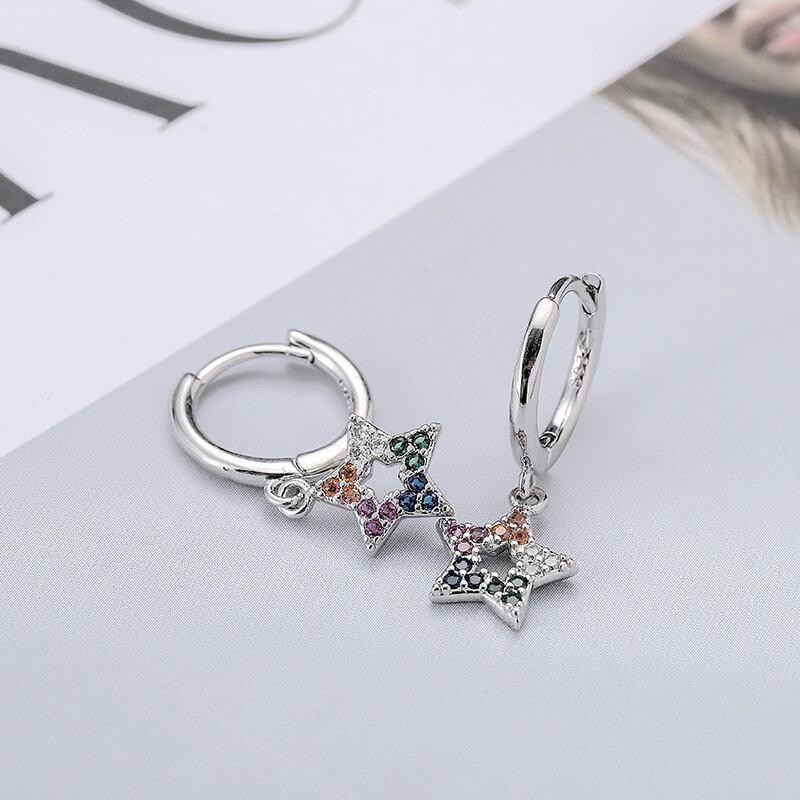 シルバーカラーのカラフルなジルコン中空スターイヤリング女性シンプルなショート絶妙なジュエリー 指輪 銀 Liv92851863124