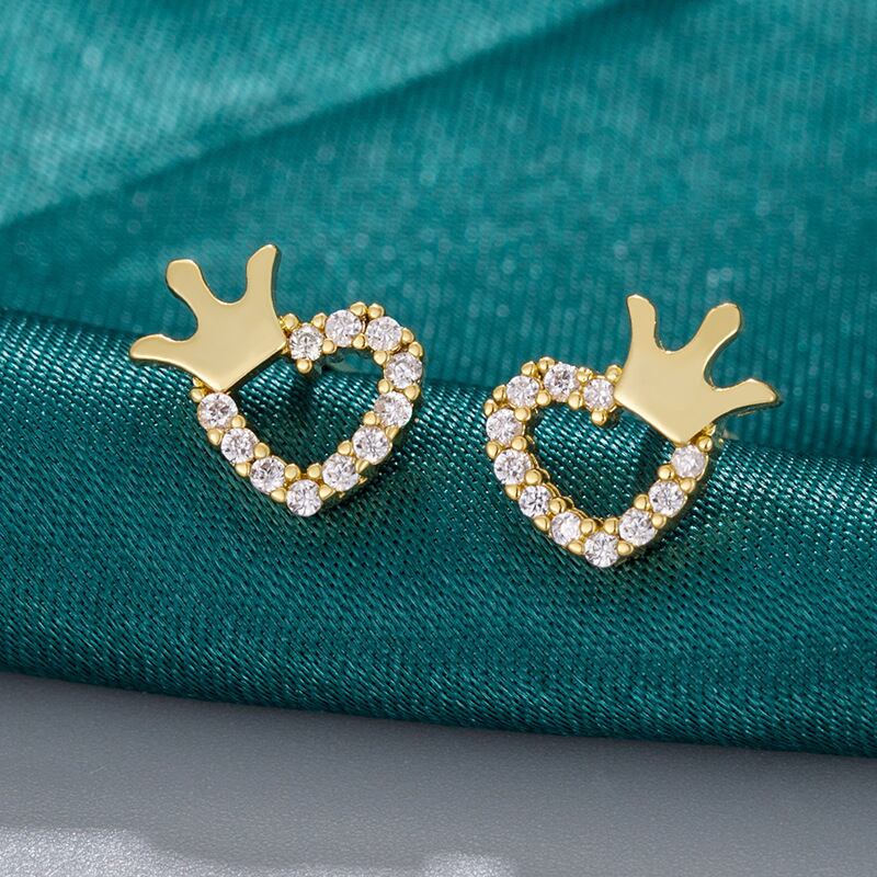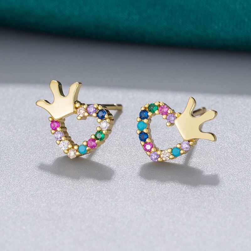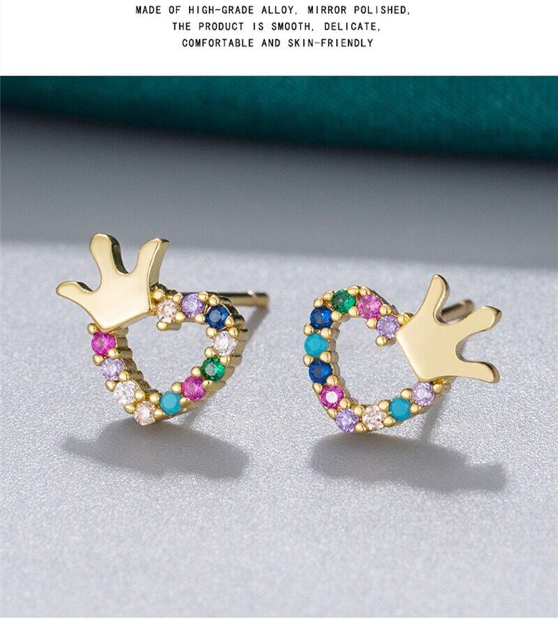 LIVVY レインボークラウンラブハートゴールドカラースタッドピアス女性カラフルなジルコンチャームジュエリーギフト イヤリング リング 指輪 Liv11728315256