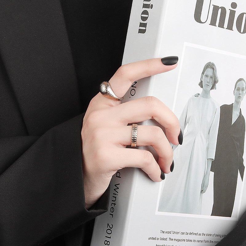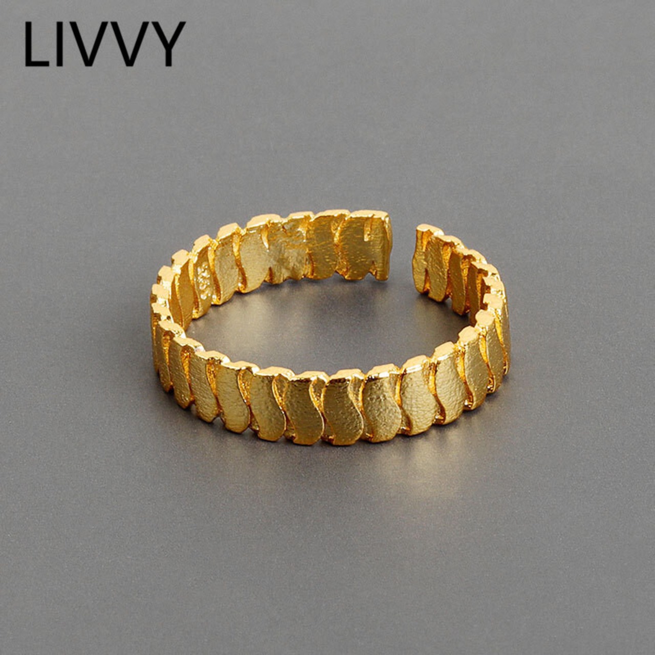 LIVVY シルバーカラー ハンドメイド 太め イレギュラー ストライプ リング レトロ イン トレンド オープン カップル ギフト トレカ 指輪 銀 Liv97728377686